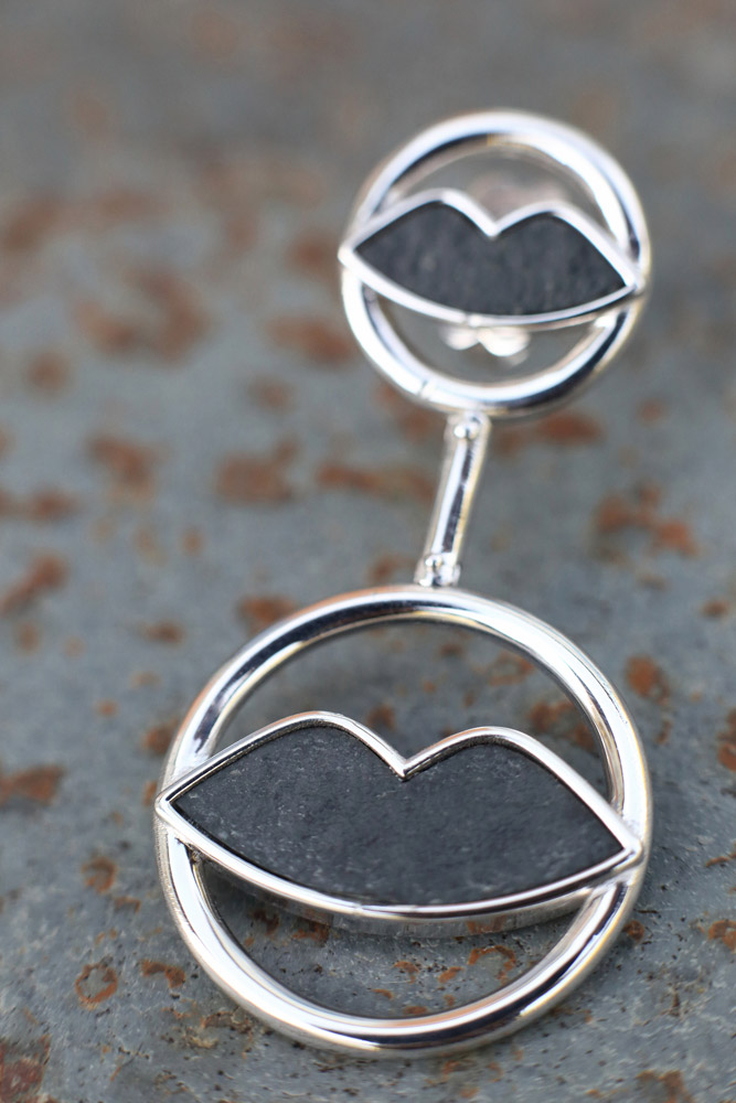 Scopri la bellezza senza tempo degli orecchini “MARILYN” realizzati con due cerchi in argento 925, questi pendenti presentano al centro due labbra in ardesia, disposte in modo da evocare un’infinita armonia. Ogni coppia di labbra racconta una storia di passione e poesia, creando un eco di baci che risuona con ogni movimento.